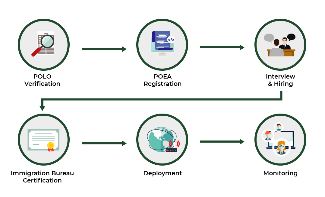 PISCO initiates sourcing and recruitment activities once the client secures POEA registration. The final selection of candidates is made by the employer.